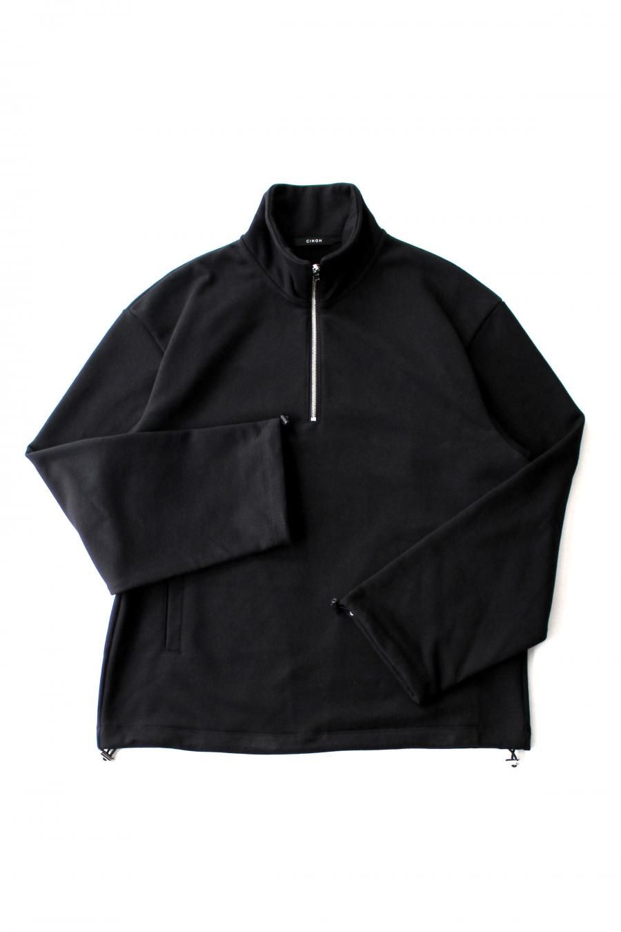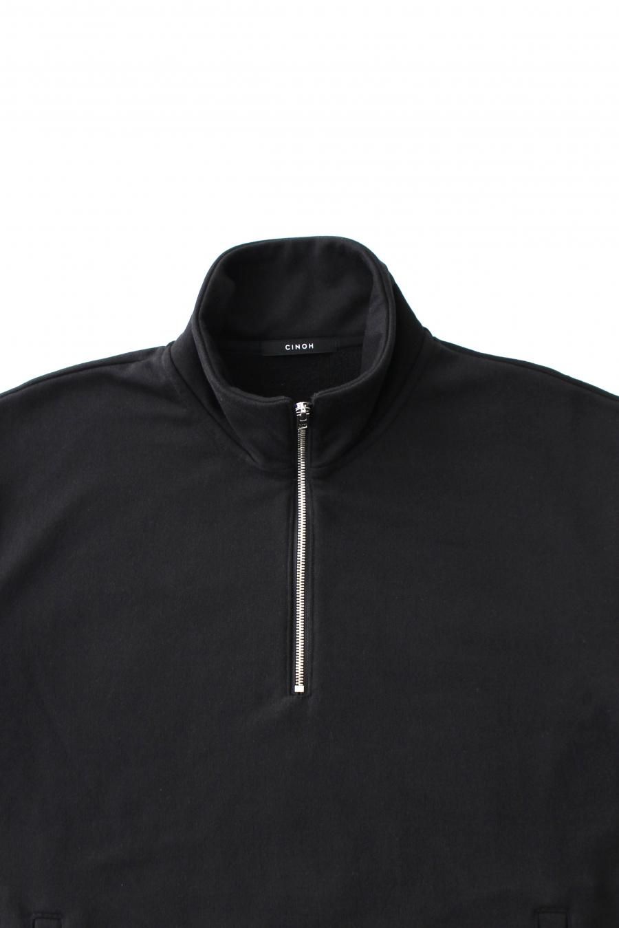 ハーフジップのハイネックスウェットシャツ。