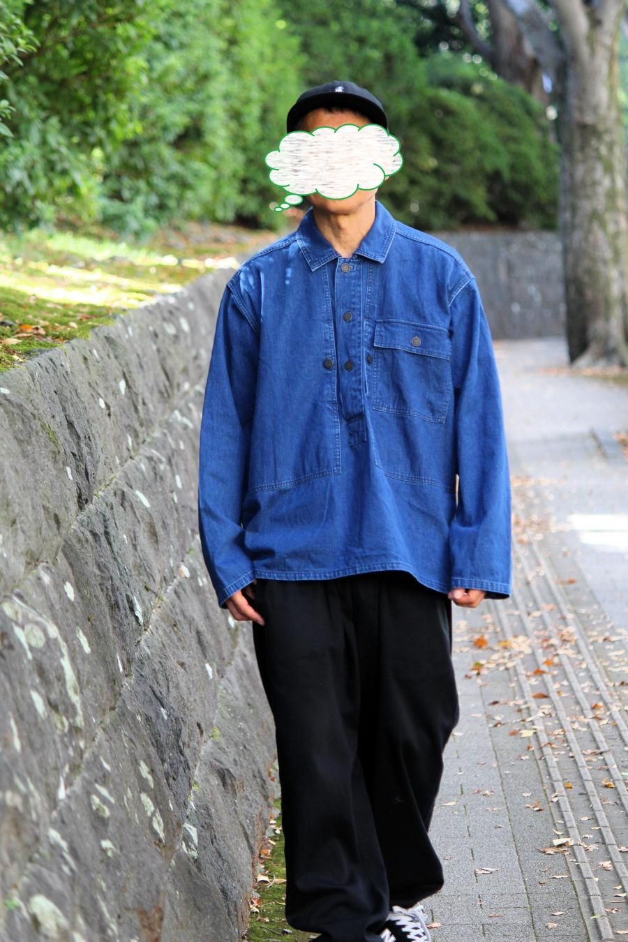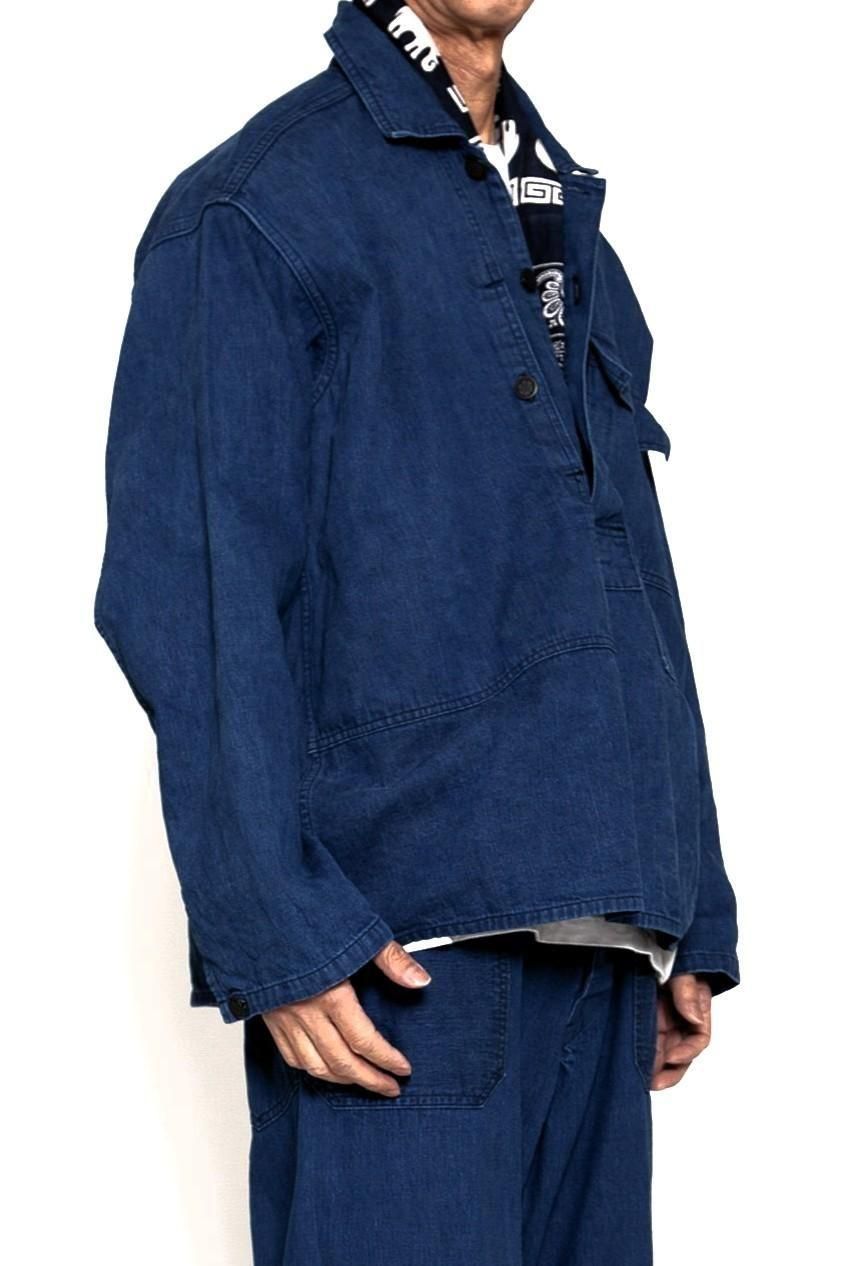 直線的でザックリとしたサイズ感のプルオーバージャケットならではのボディ。
