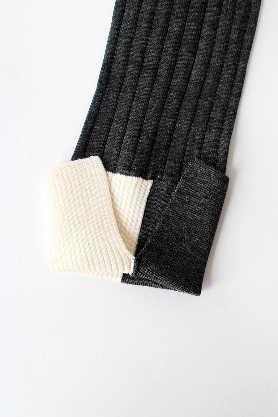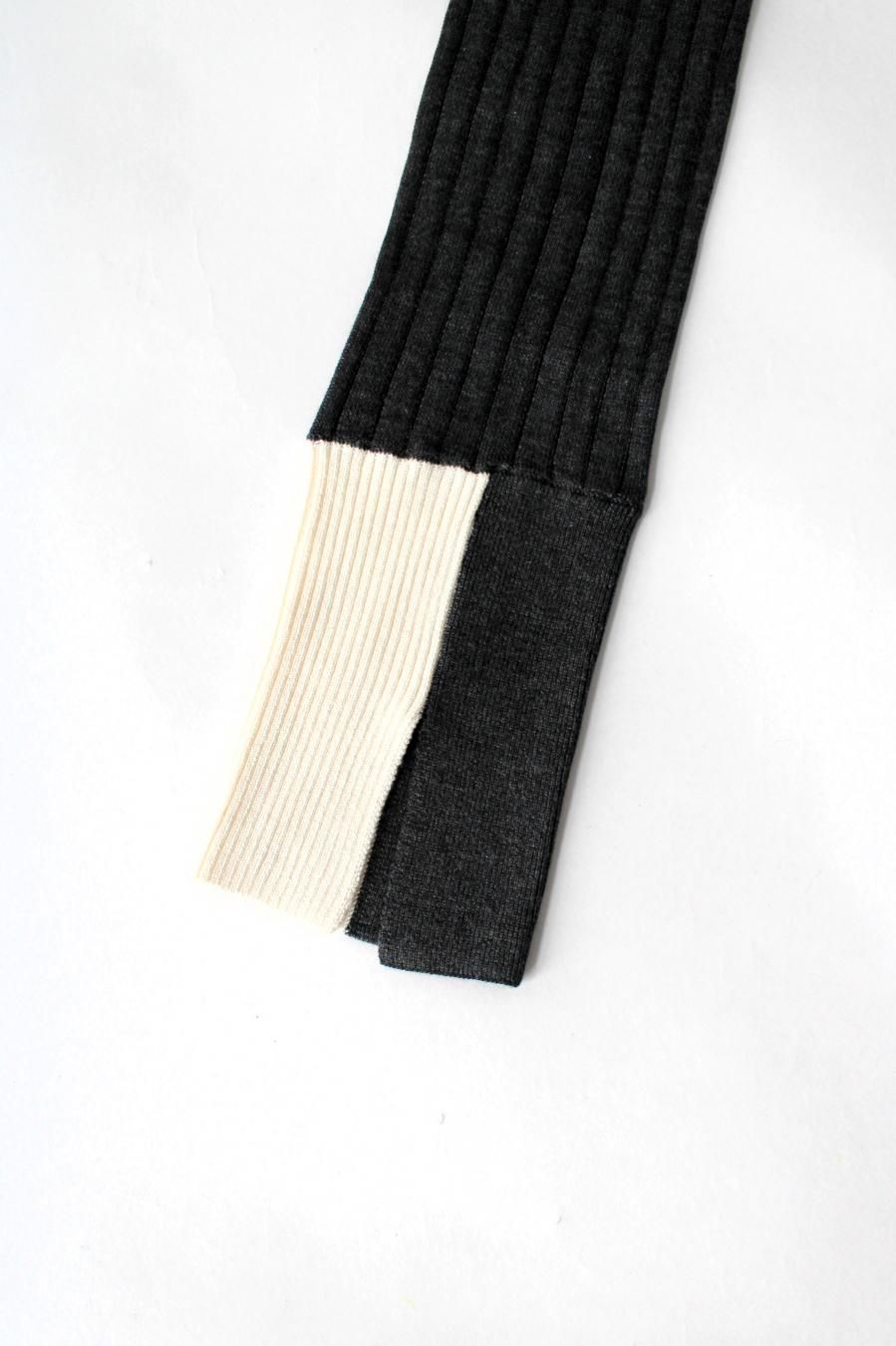 身頃は均一なリブではなく、幅や方向に変化をつけたバリエーションリブ構成。