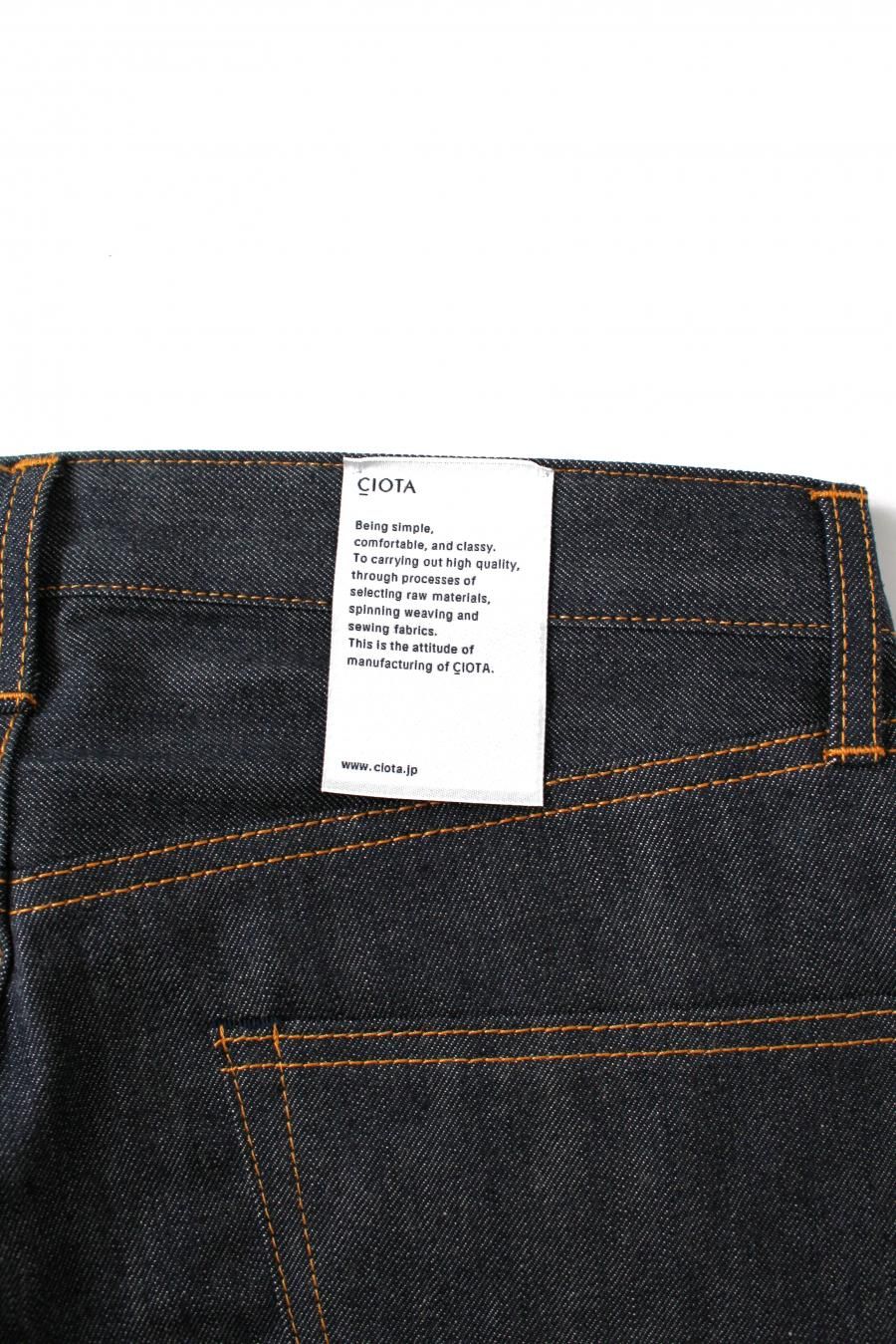 ●色落ちや縮み・歪みが全く生じないわけではありません。これまでのCIOTAデニムやデニム一般と比較して縮みにくい&色落ちしにくい特殊な加工が施されたアイテムです。