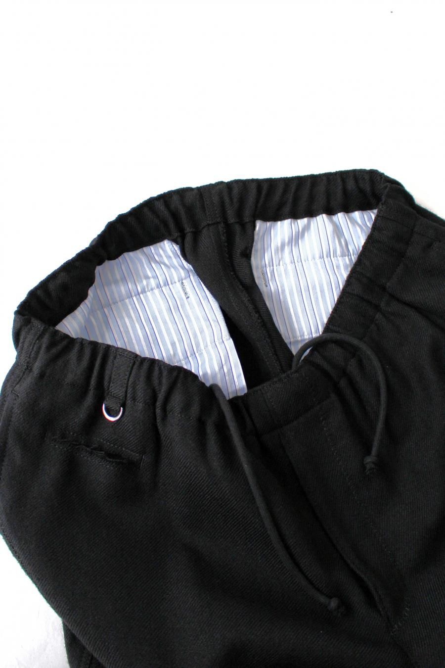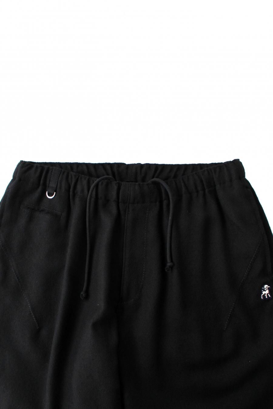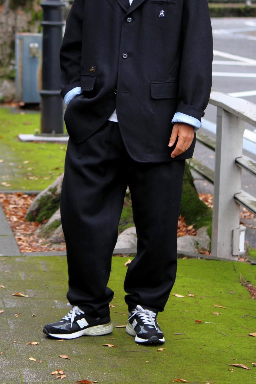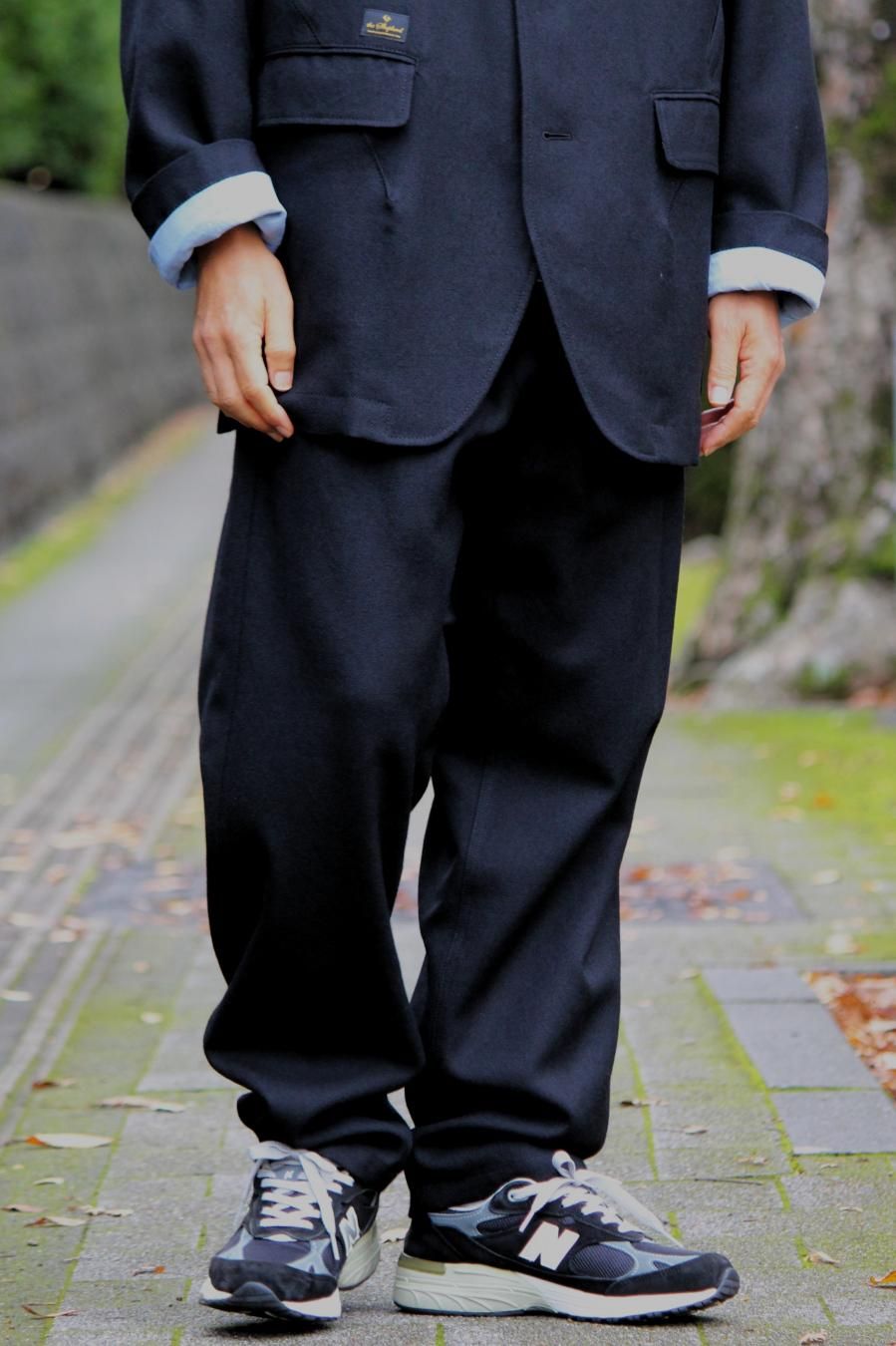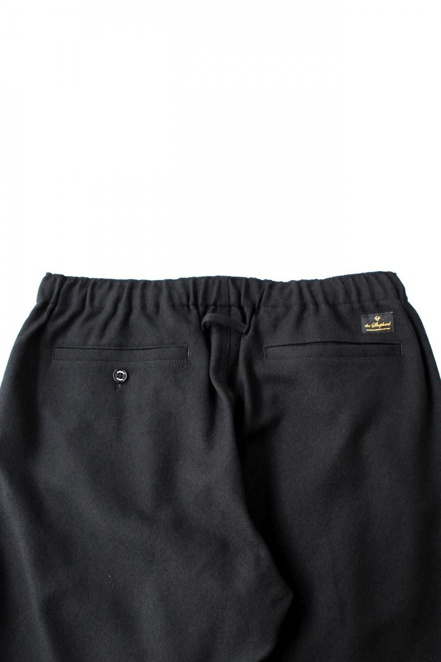 シェットランドウールを用いた紡毛のワイドイージーパンツ。
