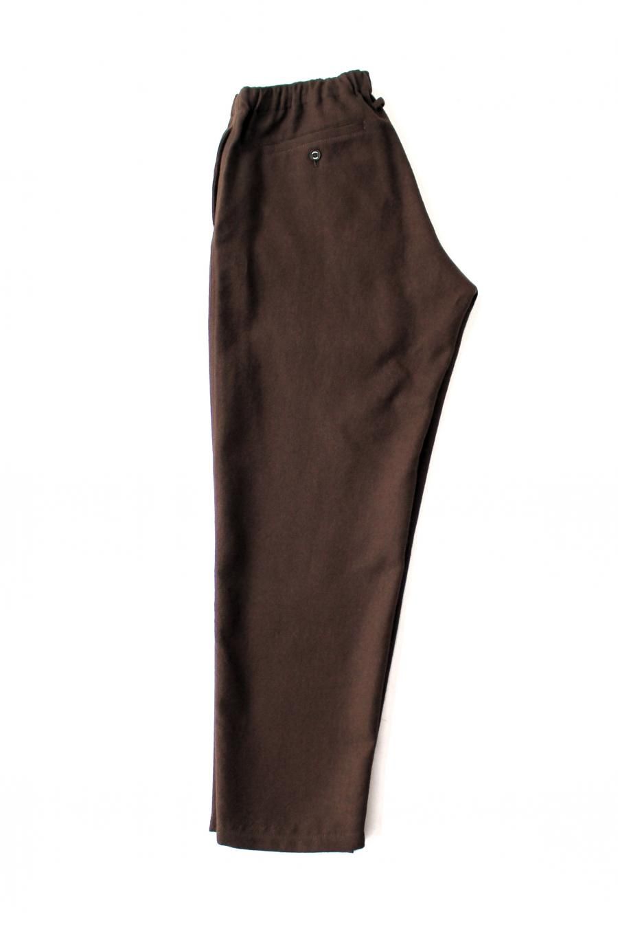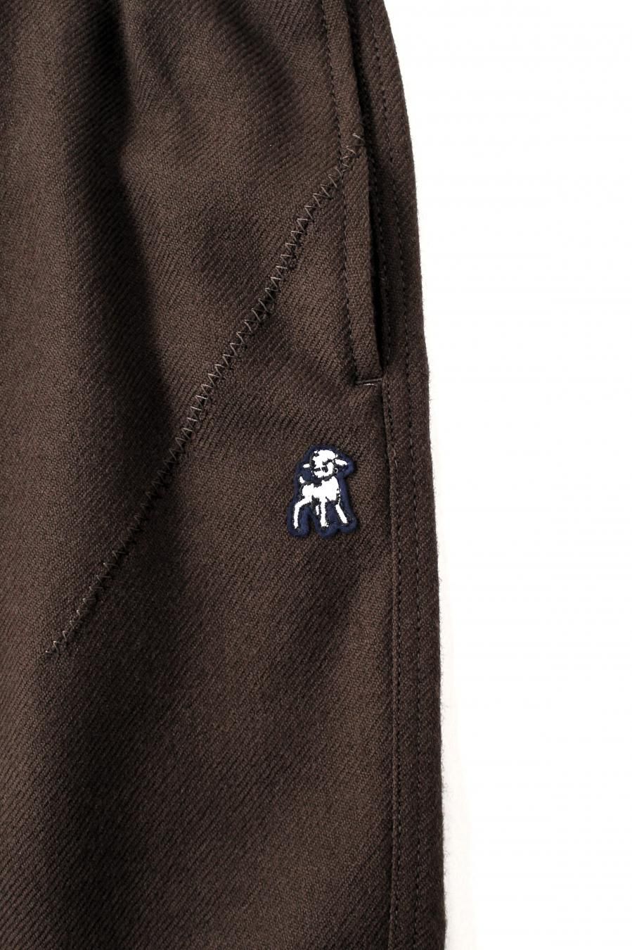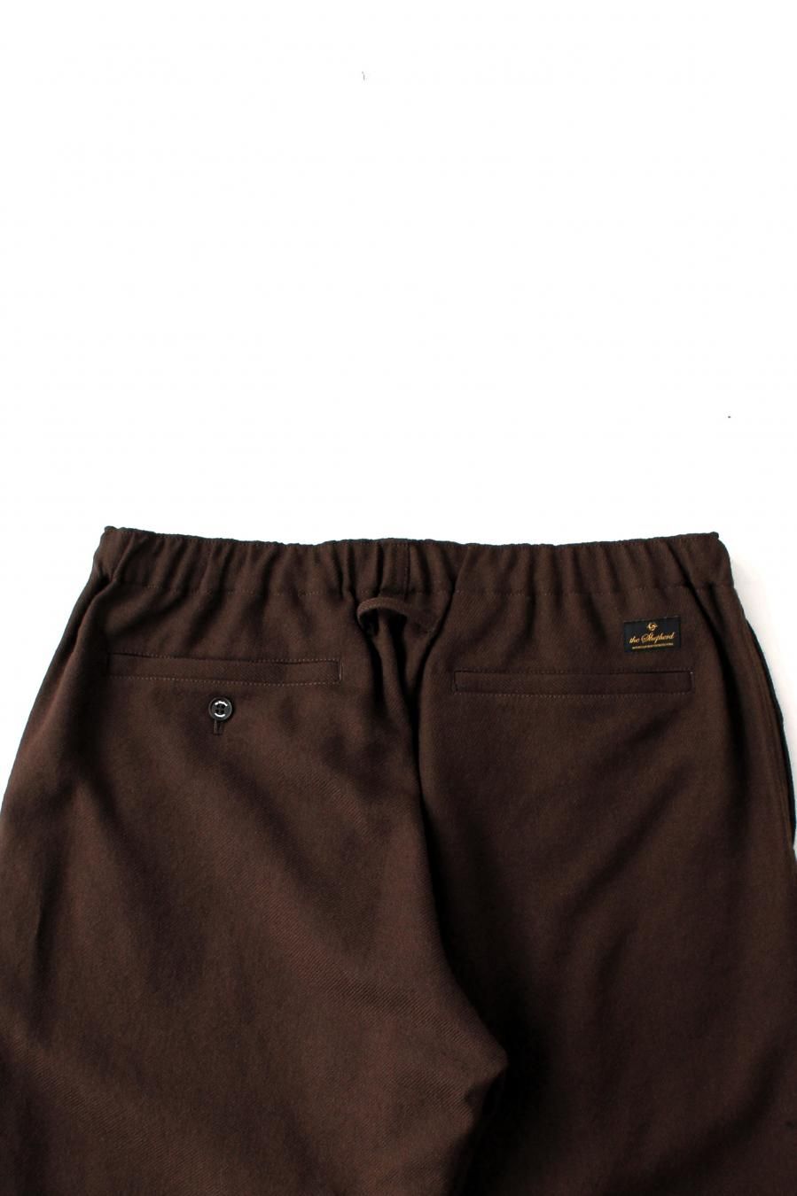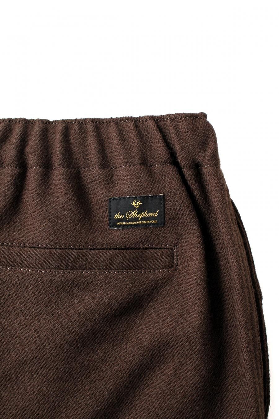 シェットランドウールを用いた紡毛のワイドイージーパンツ。