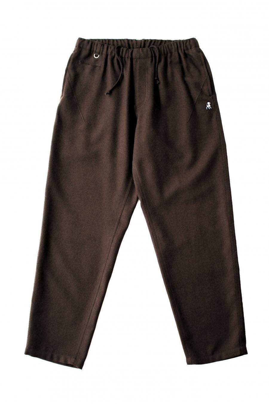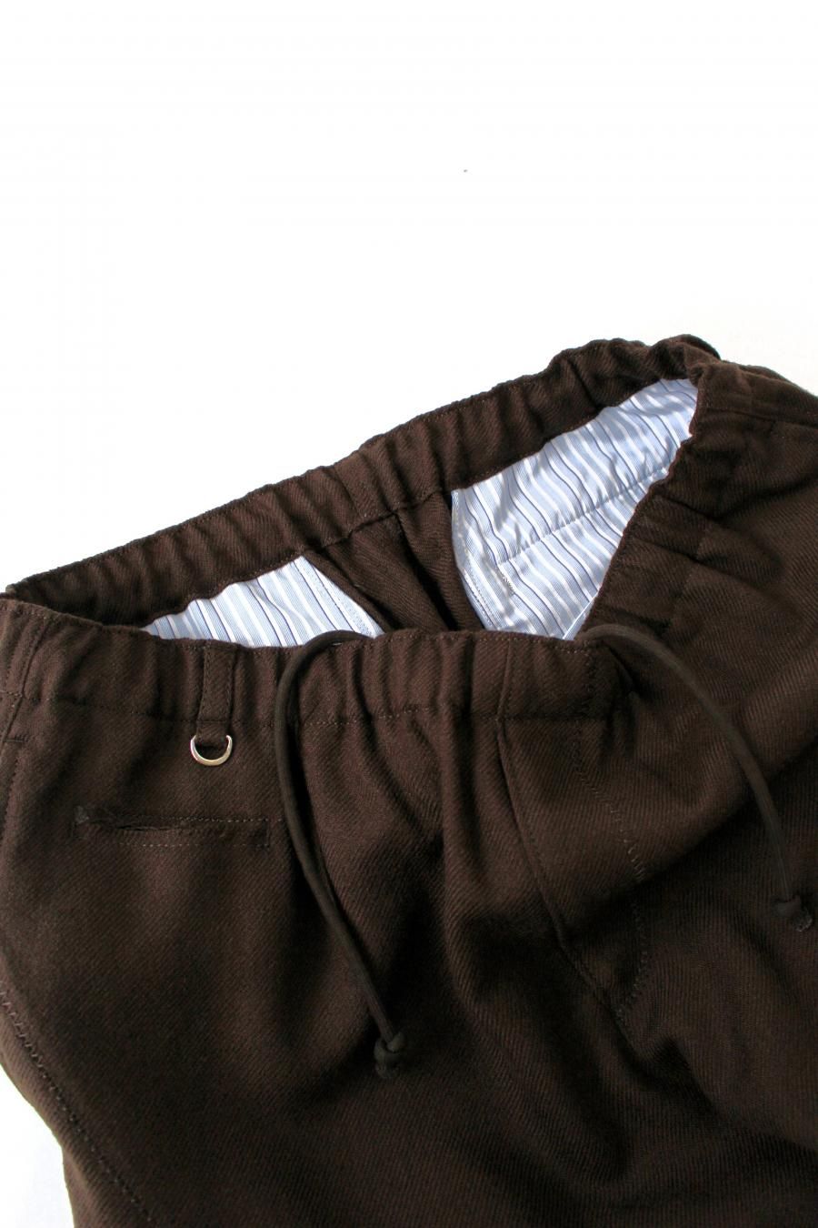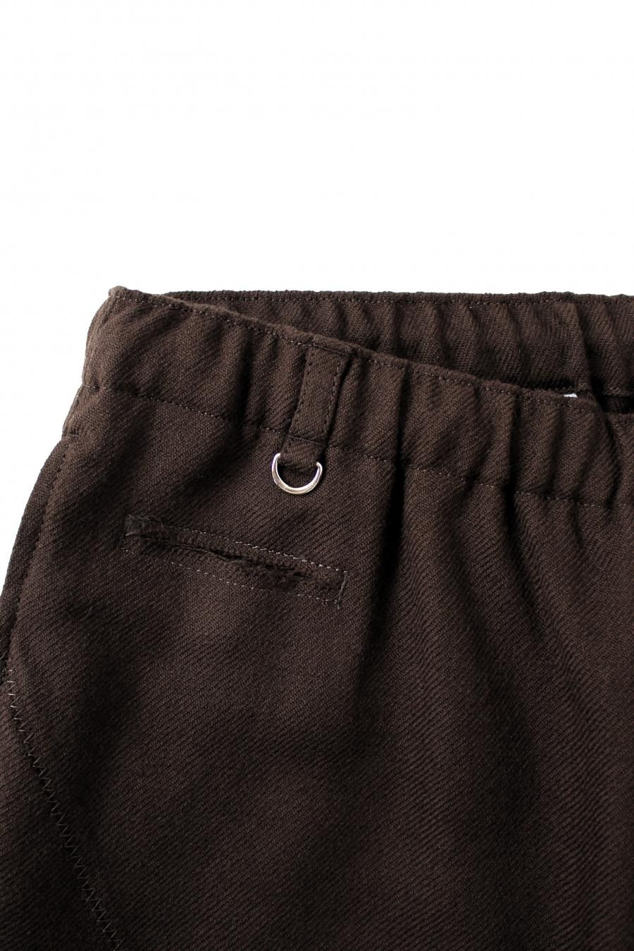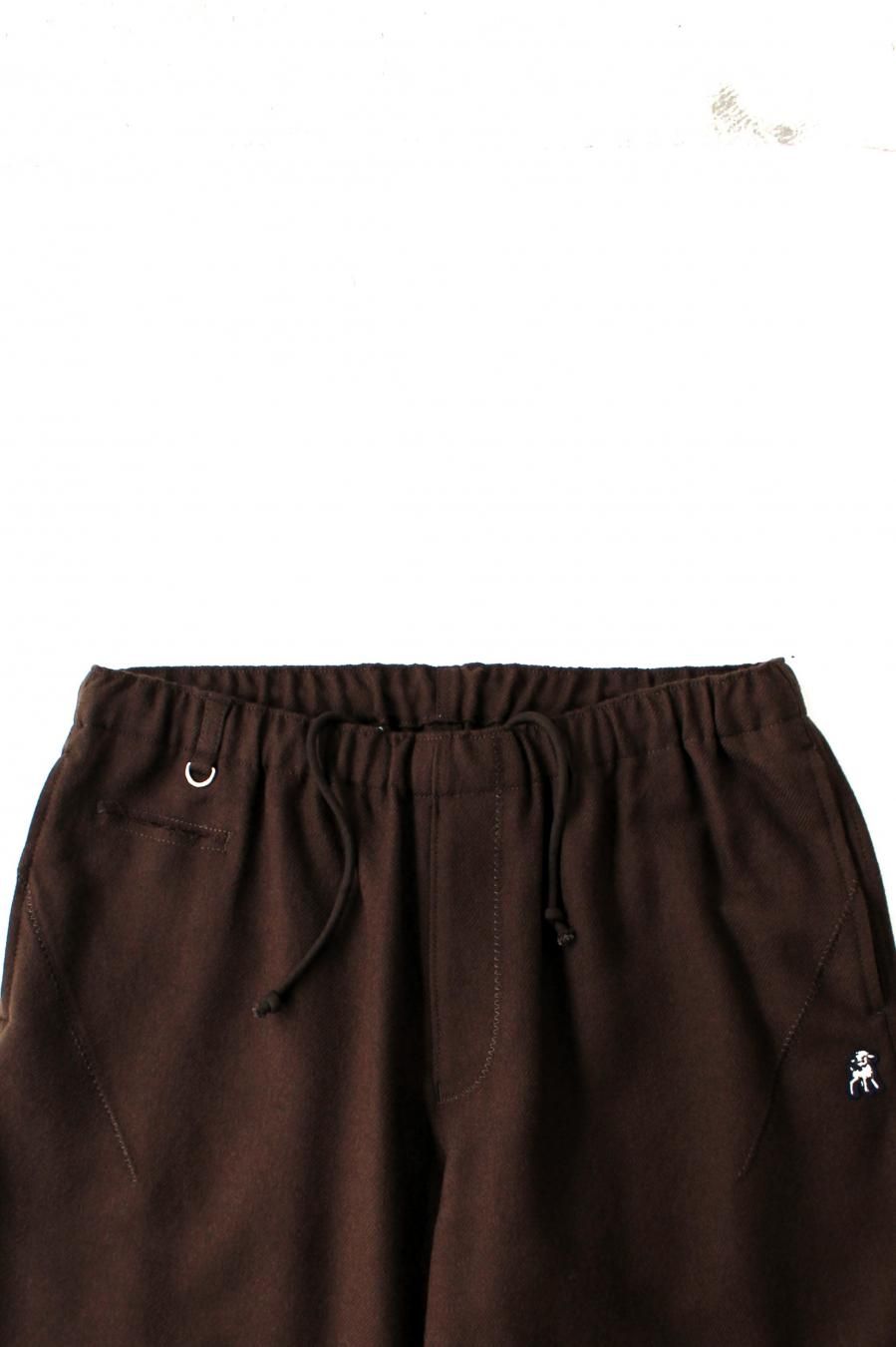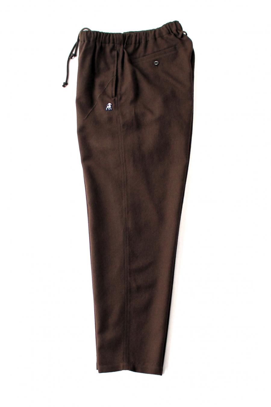 シェットランドウールを用いた紡毛のワイドイージーパンツ。