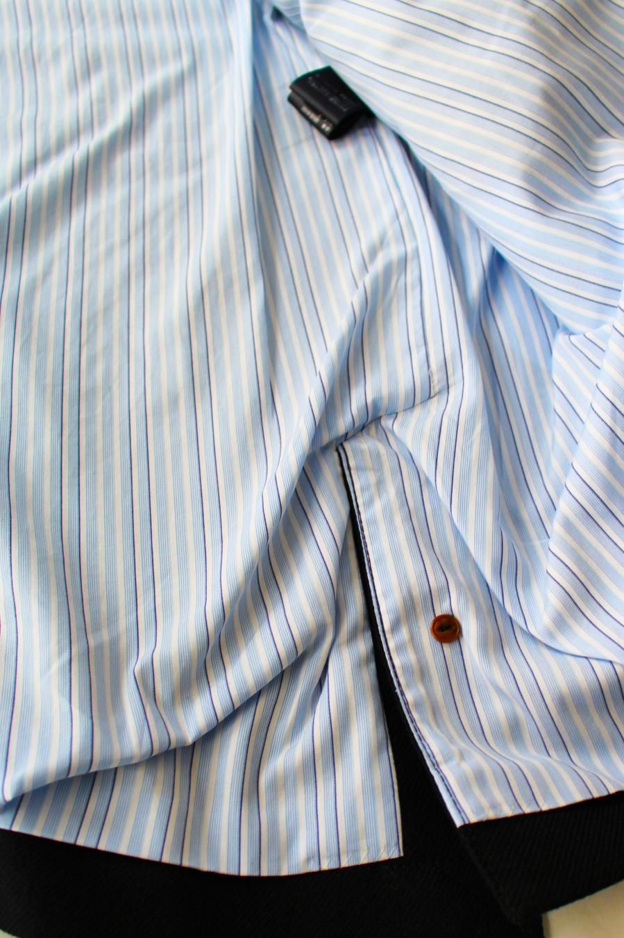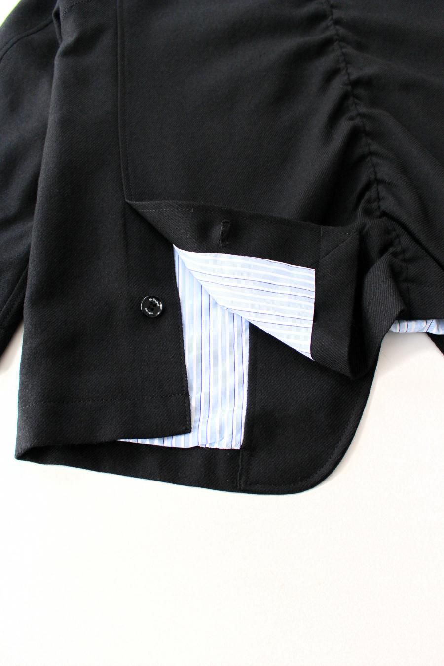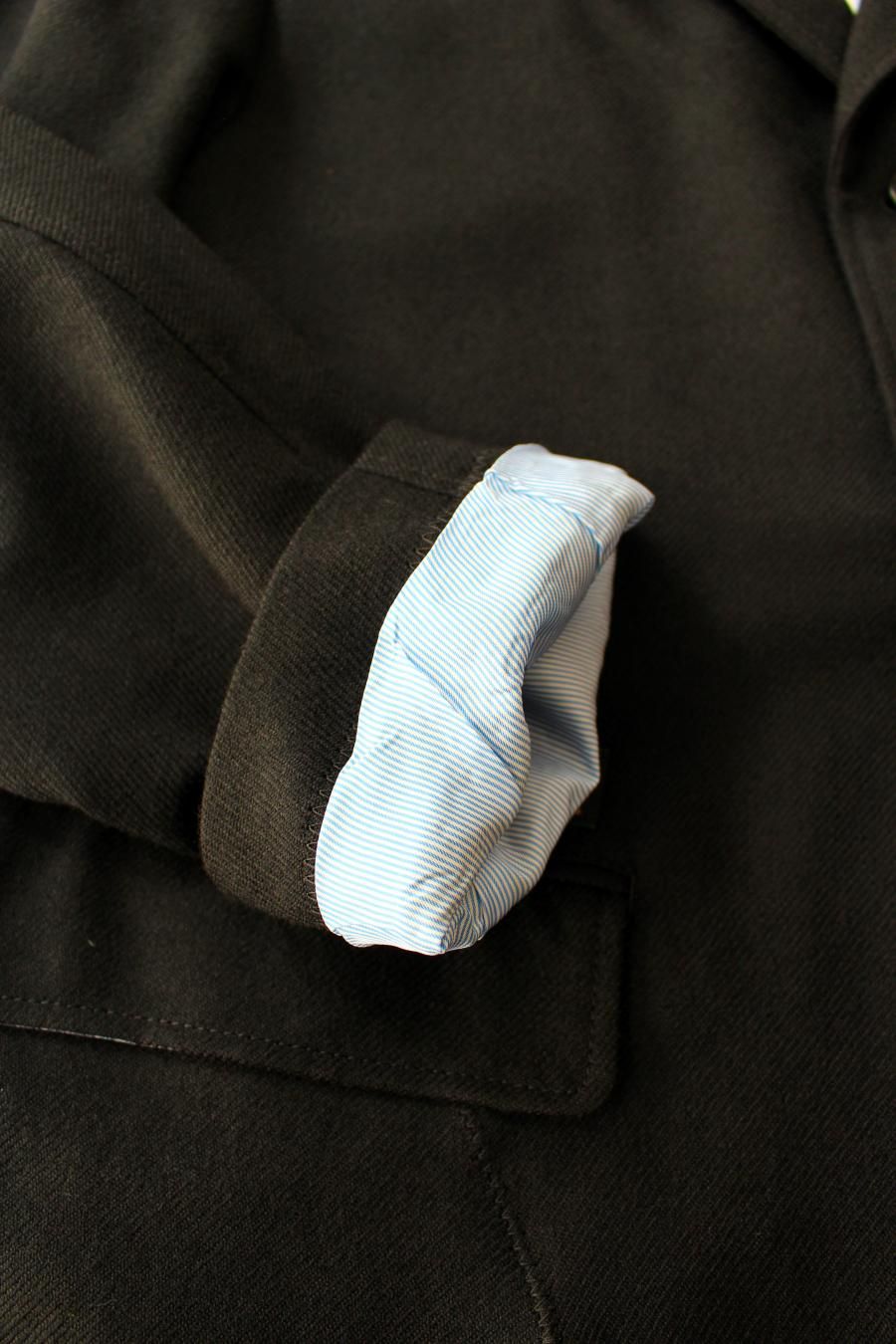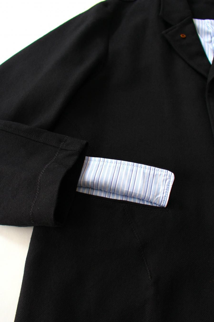 今季は袖裏が後ろ見返しと共布ではなく、サックスブルーストライプのキュプラ地へ変更。