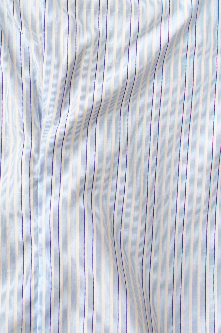 後見返しとフラップ裏、ポケット布にストライプのシャツ生地を用い、ちらっと見えた際のアクセントをつくっています。