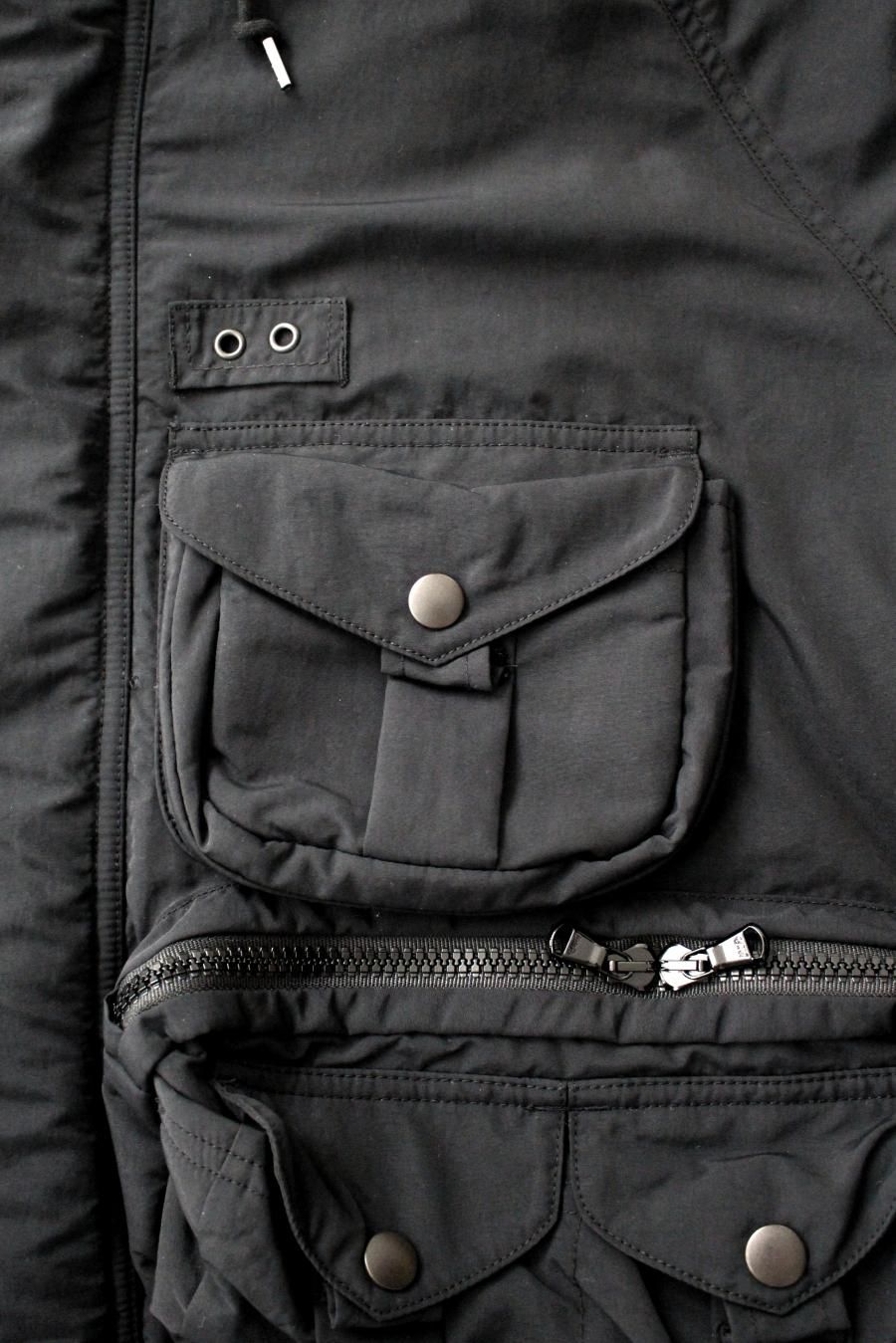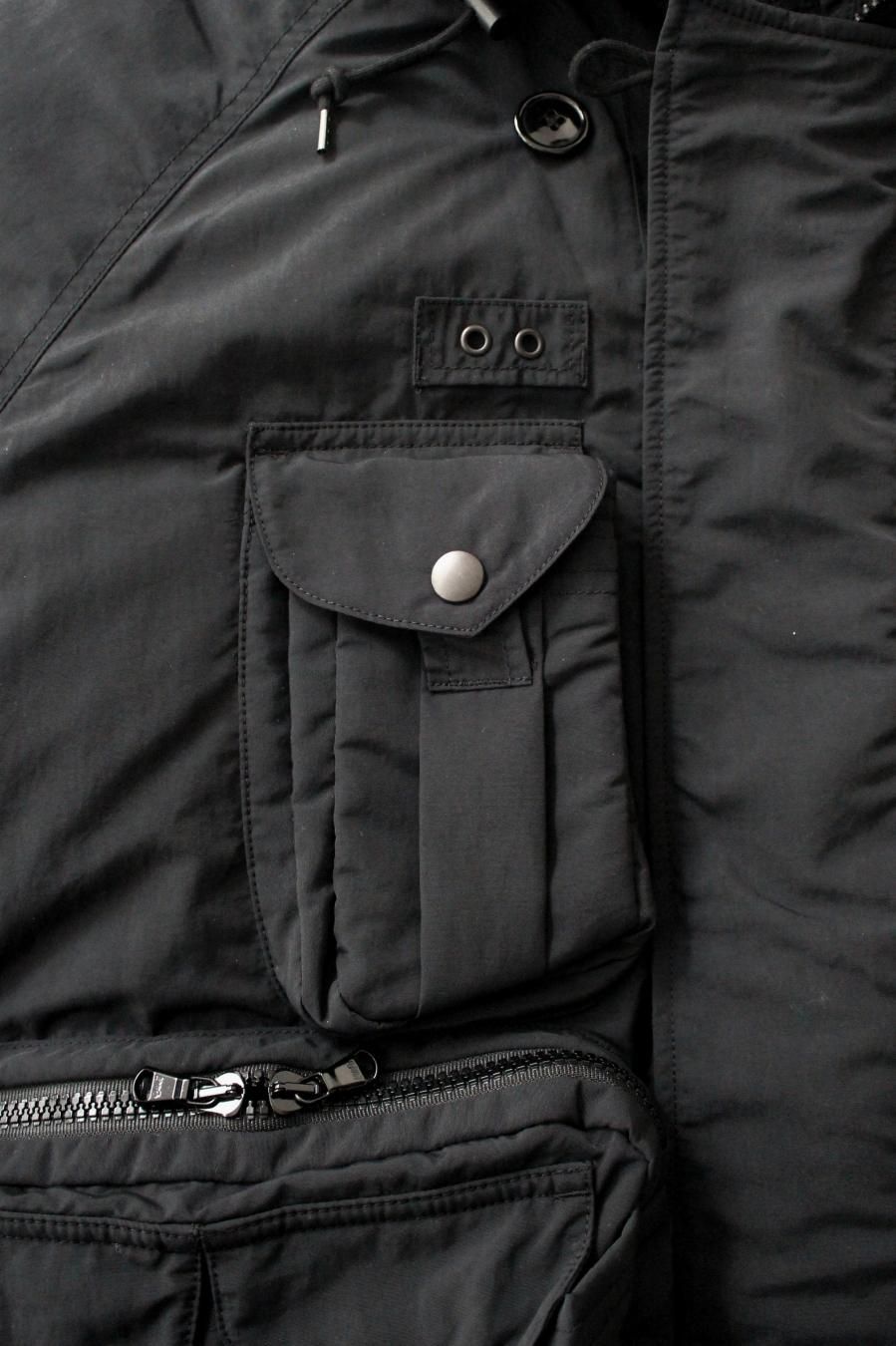 フロントの胸と裾に並んだ立体的なフラップ付きカーゴポケットが印象的な、圧倒的な存在感の一着です。