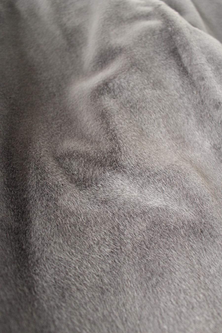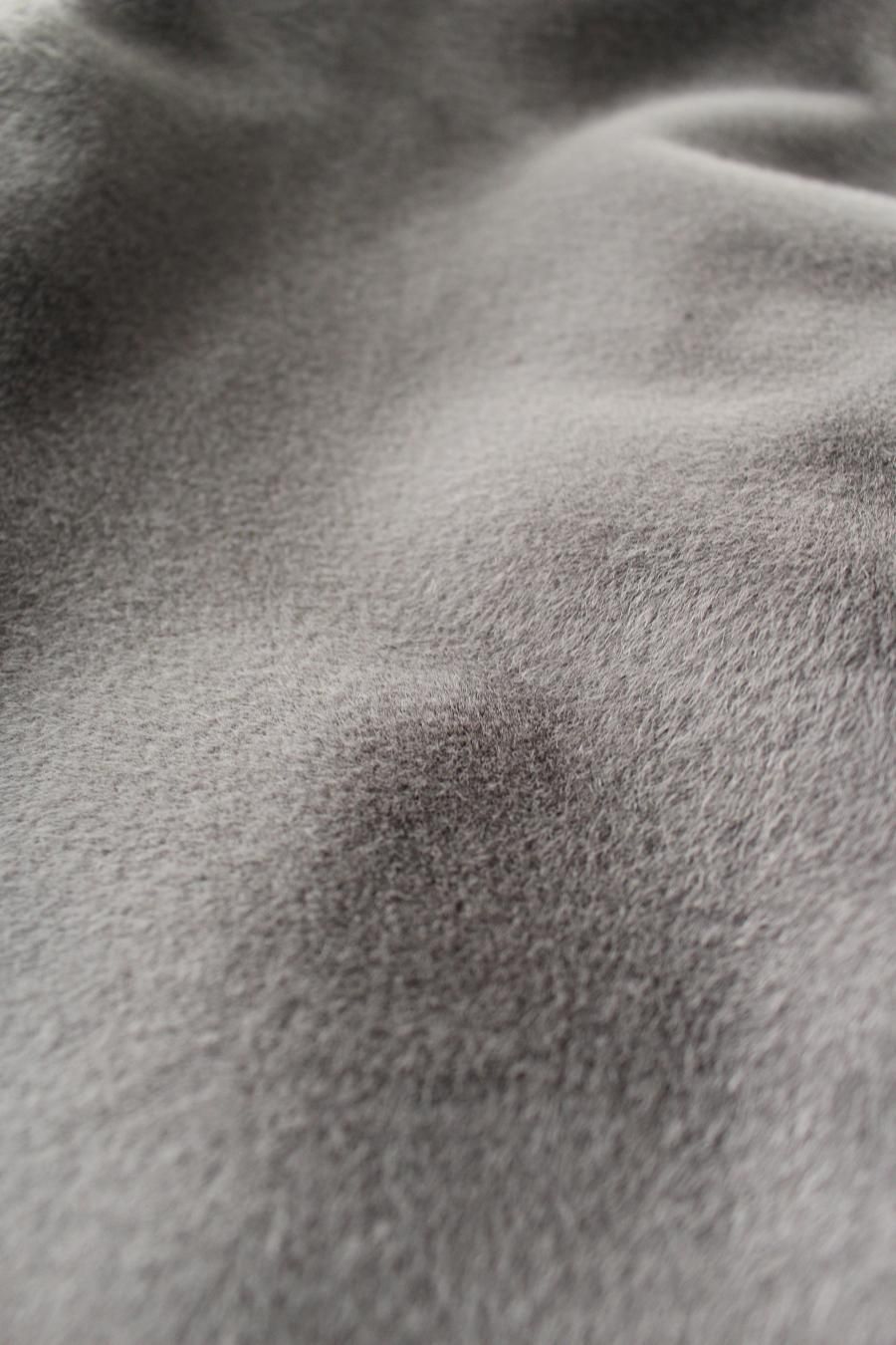 ハイゲージで密に編み上げて適度な長さの毛足を表現することで、滑らかな風合いと適度な光沢を出しました。