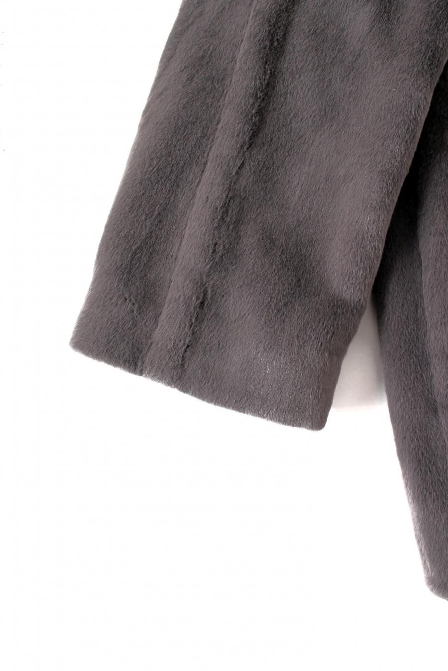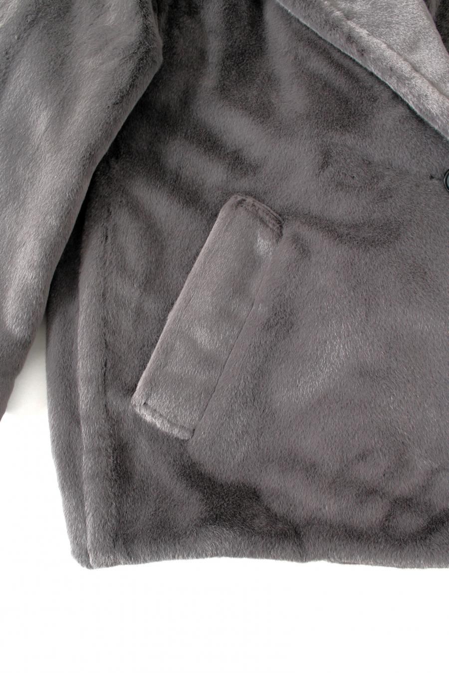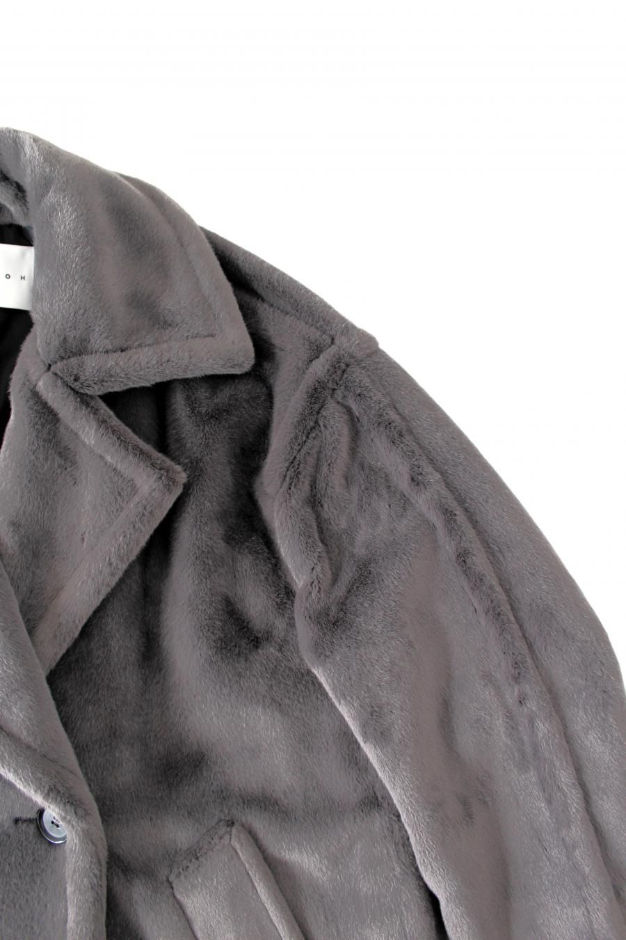 コクーンシルエットのミドル丈ファーコート。